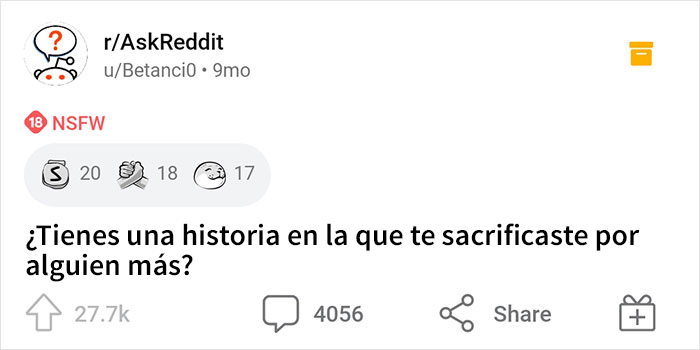 Así que, hoy, esta publicación intentará equilibrar la balanza y celebrar a los héroes que mostraron su humanidad y la bondad de su espíritu. “¿Tienes una historia en la que te sacrificaste por alguien más?”, preguntó el usuario Betanci0 cuando invitó a que cientos de personas de Reddit que comprendieron el valor de ser parte de un grupo compartan sus experiencias.