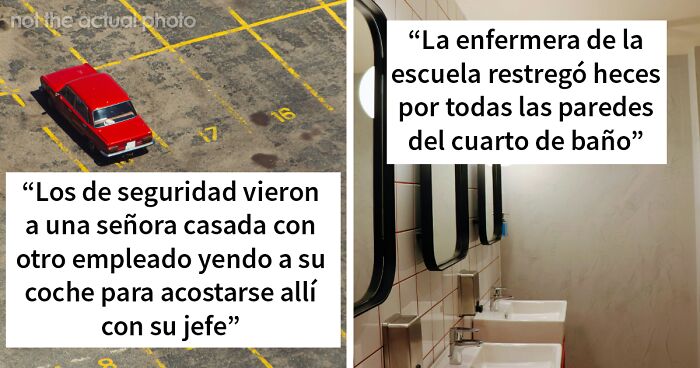 En nuestro edificio trabajaba una mujer que estaba casada con otro empleado de la empresa que trabajaba en otra oficina. El edificio del marido estaba en obras, así que lo trasladaron temporalmente al nuestro. El personal de seguridad los vio teniendo sexo en el coche de ella durante el día y lo informó a Recursos Humanos. Recursos Humanos los llamó y básicamente les dijo: "Oigan, por favor dejen de practicar sexo en el estacionamiento". El marido estaba realmente estupefacto y exigió ver la cinta. El tipo con el que su mujer se estaba acostando en el coche no era él. Era su jefe. Fue incómodo.