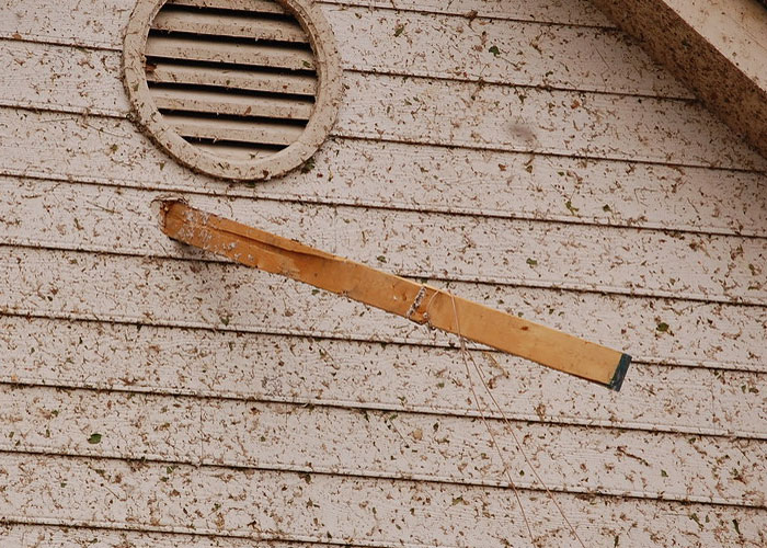 Mi compañero de trabajo corrió y lo agarró después para que no pudiera usarlo de nuevo, y cuando lo llevamos dentro, nos dimos cuenta de que estaba lleno de clavos. ¡Me alegro mucho de que ninguno de nosotros fuera golpeado con eso!