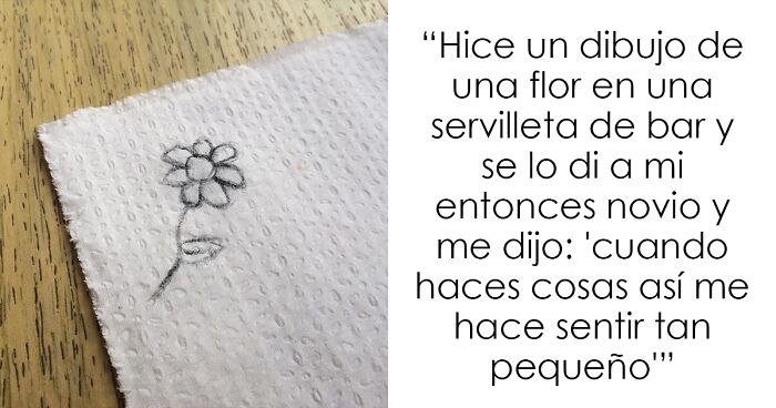 Hice un dibujo de una flor en una servilleta de bar y se lo di a mi entonces novio, y él me miró mal y me dijo "cuando haces cosas así me hace sentir tan pequeño".