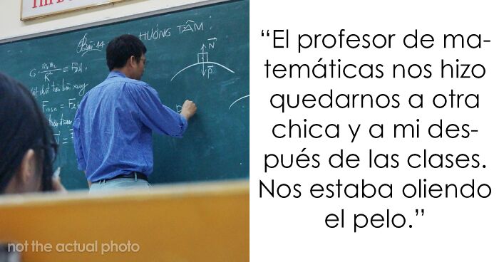 En quinto grado, mi profesor de matemáticas nos hizo quedarnos a mi y a otra chica después de clase. Dijo que nos había ido demasiado bien en el examen. Debimos haber hecho trampa. Siempre me daba una sensación extraña estar con él, pero cuando estábamos a solas, incluso nos olía el pelo. Cuando terminé el examen, me dijo que me fuera.