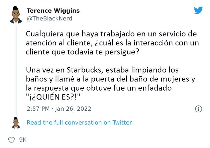 El escritor, crítico y presentador de @LowStakesShow, Terence Wiggins, también conocido como The Black Nerd, acudió a Twitter para compartir una interacción con un cliente que no olvidará pronto por lo inquietante que fue.