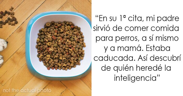En su primera cita, mi padre accidentalmente le dio a mi madre y a él mismo comida para perros. Comida para perros caducada. Así fue como me di cuenta de quién había heredado la inteligencia.