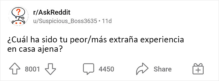 Recientemente, un hilo en Ask Reddit se hizo viral con gente compartiendo sus historias en respuesta a "¿Cuál ha sido tu peor/más extraña experiencia en casa ajena?".