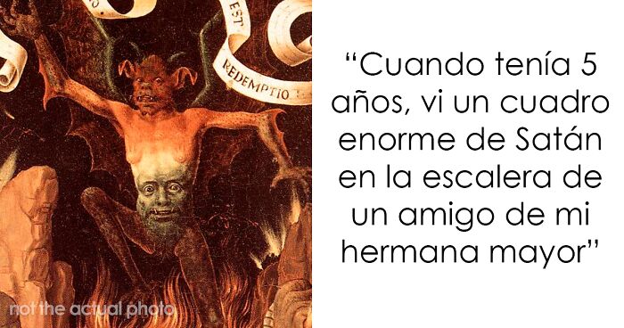 Cuando tenía cinco años, los padres de un amigo de mi hermana mayor tenían un gran cuadro de Satanás en el hueco de la escalera. Todo lo que recuerdo es que me aterrorizó muchísimo y, hasta el día de hoy, no puedo entender por qué tenían eso.