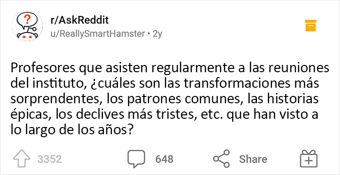 Este usuario de Reddit decidió pedir a los profesores que van a las reuniones que compartieran los cambios por los que suele pasar la gente y si hay algún patrón común o incluso algunas historias tristes de decadencia que tengan que compartir, y esto dio lugar a un hilo online muy interesante. Así que sigue avanzando para leer algunas de las mejores respuestas que hemos reunido.