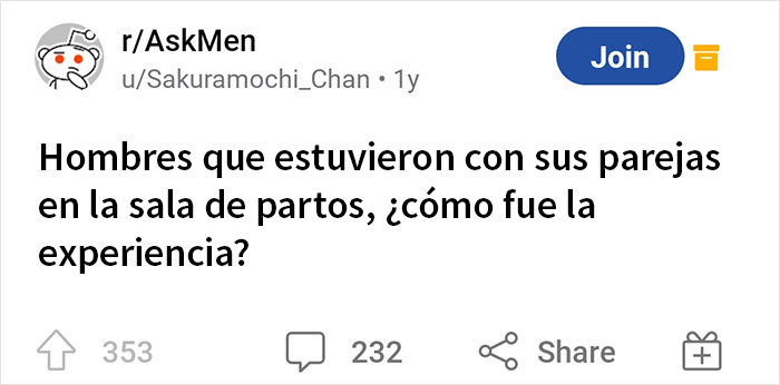 Para ampliar estas cifras, echemos un vistazo a un post de Reddit del usuario Sakuramochi_Chan, que pidió a los padres en la plataforma que estuvieron con sus parejas en la sala de partos que describieran la experiencia.