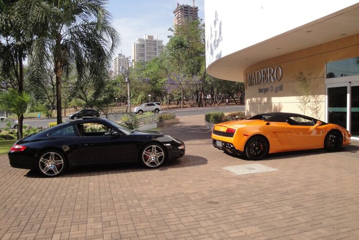 Debo mencionar en este punto que cada uno de ellos conducía un Lamborghini, uno negro y otro naranja, uno detrás del otro en la fila para recoger a sus hijos de la escuela primaria.