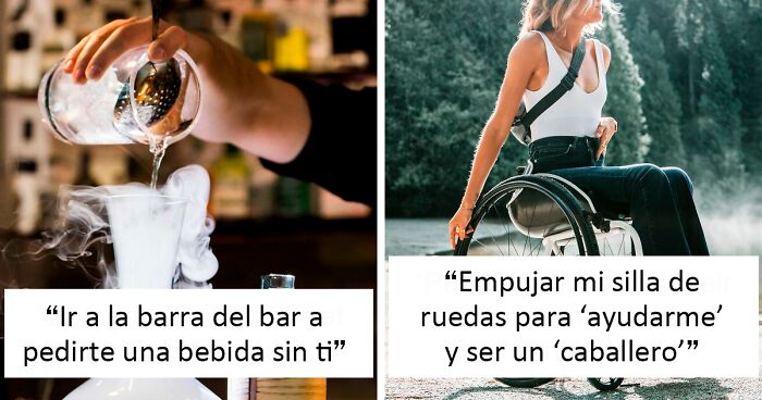 Empujando mi silla de ruedas para "ayudarme" y ser un "caballero". Me estás secuestrando literalmente: no es diferente, desde mi punto de vista, a que cojas a una mujer sin discapacidad y te vayas con ella.