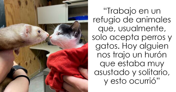 Trabajo en un refugio de animales que, usualmente, solo acepta perros y gatos. Hoy, alguien nos trajo un hurón que estaba muy asustado y solitario y esto ocurrió