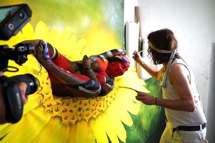 “Luego pinté el fondo con la enorme flor y finalmente, el bodypainting,» contó en LADbible. «Hasta ahora, las reacciones han sido muy positivas y mucha gente está de acuerdo en que es mi mejor obra por el momento.»
