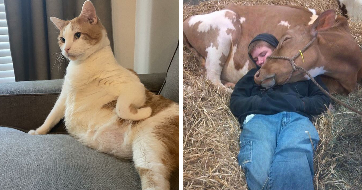 "Nuestra vaca no se encontraba bien, así que anoche mi hijo salió a pasar tiempo con ella. Me desperté por la mañana y me encontré con esto".
