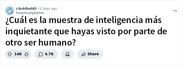 «¿Cuál es la muestra de inteligencia más inquietante que hayas visto por parte de otro ser humano?»: 20 respuestas