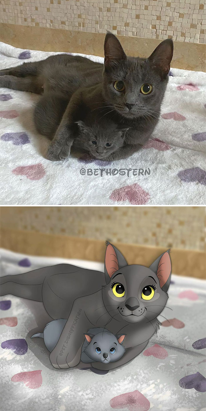 Hemos recopilado algunos de los mejores dibujos de gatos, perros, conejos y más de su cuenta. Continúa desplazándote, vota por tus favoritos y asegúrate de ver nuestro anterior post sobre ella aquí. Psst, si te apetece ver más transformaciones tipo Disney, puedes encontrarlas aquí y aquí.