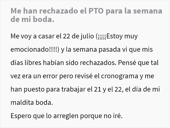 Un redditor contó cómo (casi) lo hacen trabajar el día de su boda y otros empezaron a contar sobre las veces que sus solicitudes de días libres fueron rechazadas