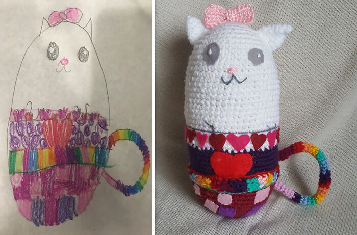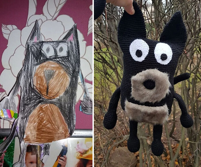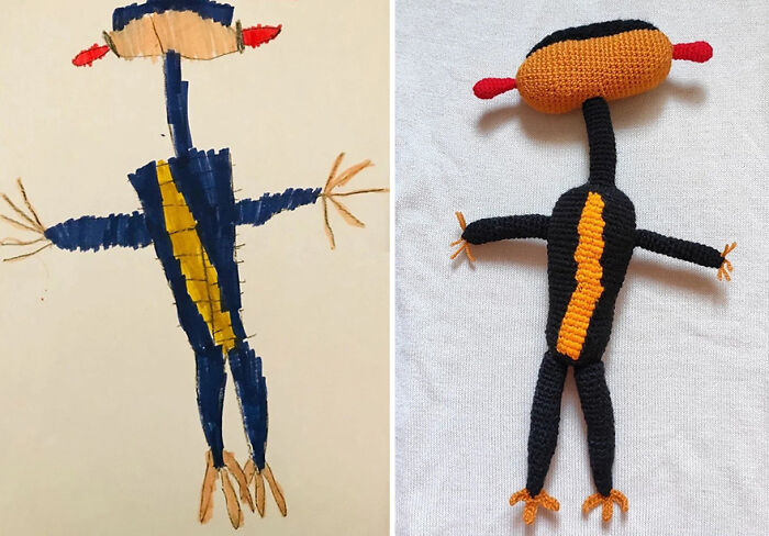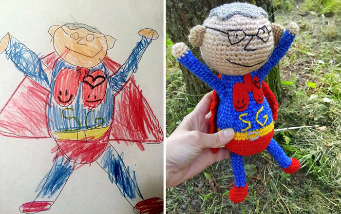 A continuación, verás algunos de los lindos juguetes que hice a partir de dibujos de niños. Me gusta mucho la imaginación de los niños (a veces también de los adultos) y me divierto mucho haciendo juguetes para ellos.