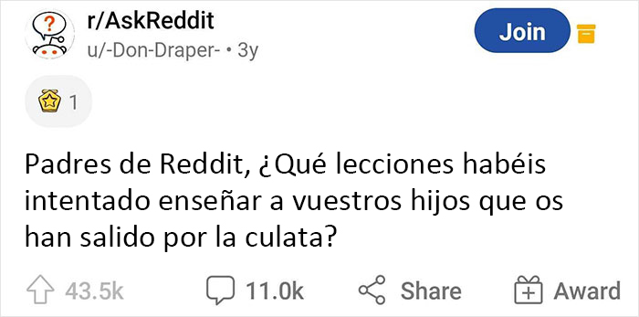 Si esto te resulta familiar, esperamos que te consuele saber que no eres el único. Un usuario de Reddit decidió averiguar qué accidentes graciosos tenían los padres cuando compartían consejos con sus hijos. Preguntó: "¿Qué lecciones habéis intentado enseñar a vuestros hijos que os han salido por la culata?", y llegaron miles de historias.