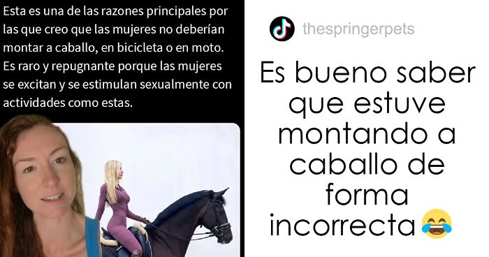 “Imagínate llamarte ‘Masculinidad alfa’ pero que te de miedo que un caballo te robe a tu mujer”. Una usuaria en línea llevó esto a TikTok para humillar a una cuenta de Twitter, o en particular, a un hilo que hizo un hombre con respecto a su desaprobación de que las mujeres montaran a caballo, en bicicletas y también en motocicletas debido a que estas actividades, aparentemente, las excitan. El video consiguió casi 163.000 me gusta, 771.900 vistas y 162.700 comentarios que discutían esta extraña afirmación.