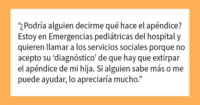 No sé qué hace el apéndice pero no me fio de los médicos que intentan salvar a mi hija