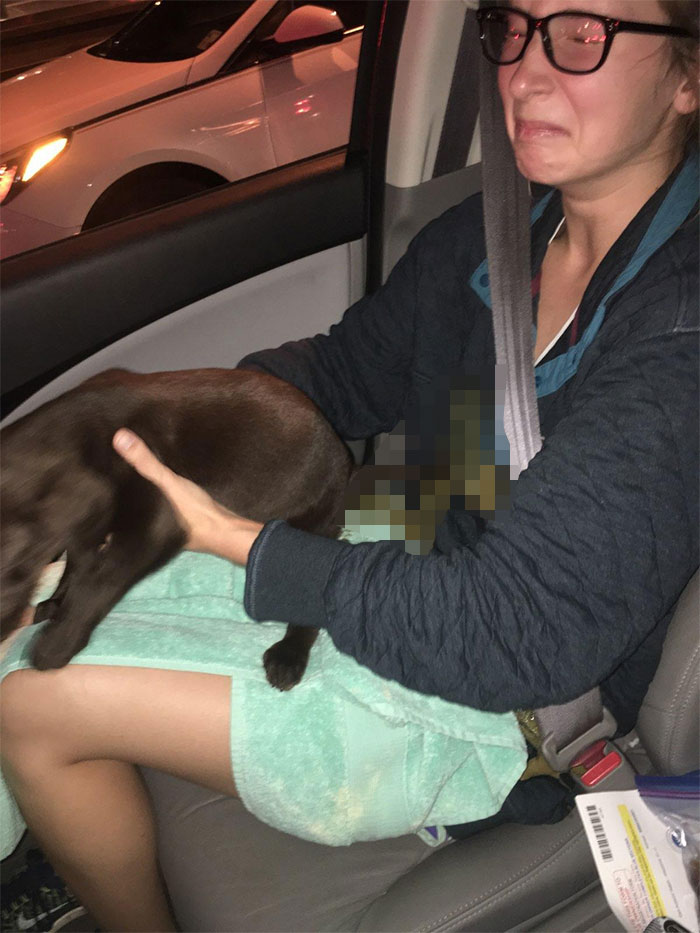 Mi hermano, volviendo a casa tras adoptar su nuevo cachorro