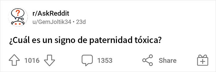 Por eso, cuando alguien se preguntó en Ask Reddit "¿Cuál es un signo de paternidad tóxica?", estaba destinado a convertirse en una lectura esclarecedora sobre las formas en que la gente puede saber si sus métodos de paternidad hacen más daño que bien.