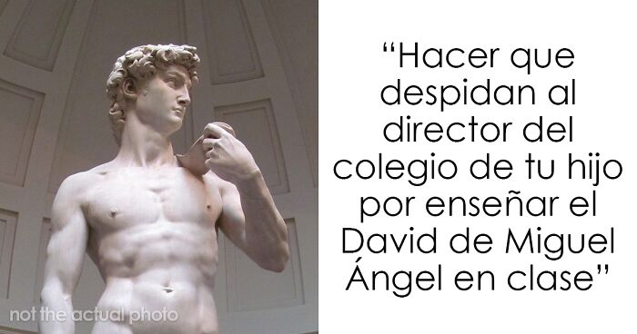 Hacer que despidan al director del colegio de tu hijo por enseñar el David de Miguel Ángel en clase.