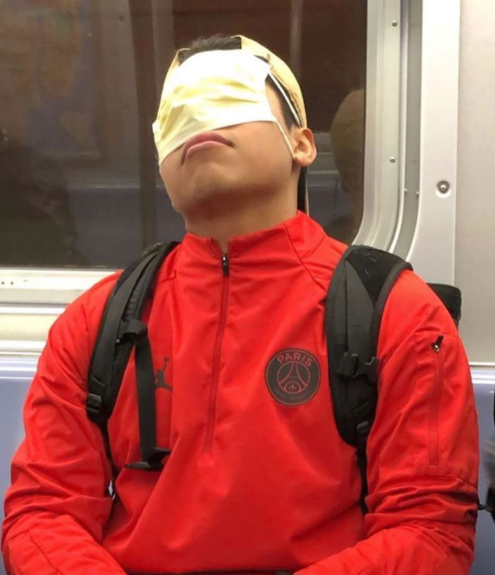 Esta página de Instagram publica las mascarillas anticoronavirus más ridículas vistas en el metro (37 fotos)