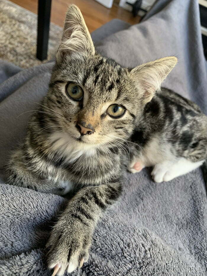 Rescatamos un gatito hace unas dos semanas. Su nombre es Mira