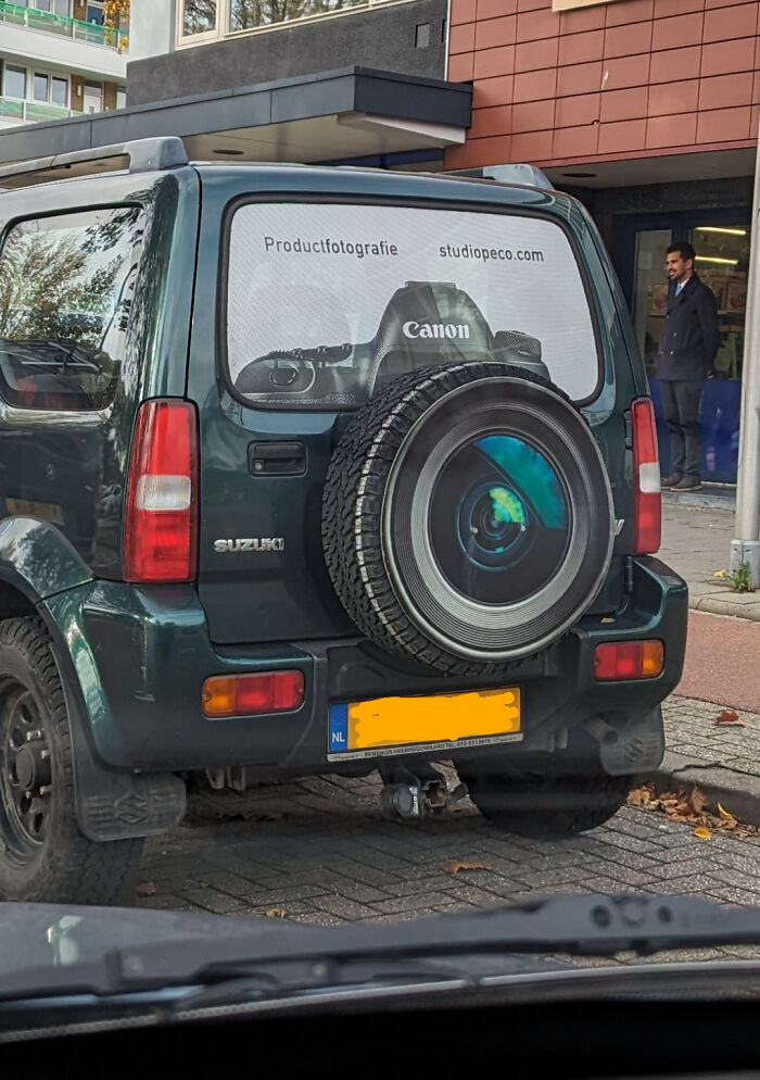 Anuncio de una cámara Canon en un Suzuki Jimny