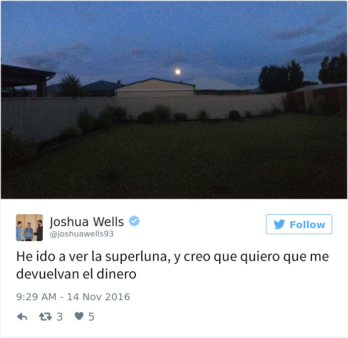 Las luces de las ciudades y las nubes bloquearon las increíbles vistas en muchos sitios. La superluna fue una superdecepción, y la frustración evolucionó, cómo no, en divertidos memes en internet. Aquí hemos recopilado unos pocos, por si tú también quedaste decepcionado. No os preocupéis, volverá en 2034.