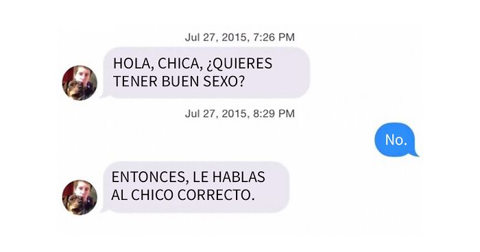 Desgraciadamente, querer conocer a alguien en línea conduce de manera inevitable a un campo minado de fotos no solicitadas, preguntas y algún chiste que pueden llegar a asustar de entrada; la cuenta de twitter 'Straight Boy Texts' (‘Mensajes de chicos heterosexuales’) se dedica a documentar este fenómeno. Con casi 60.000 seguidores, este proyecto recopila capturas de pantalla de algunos de los peores encuentros que las mujeres han tenido con extraños en Internet; el resultado es divertidísimo e irritante al mismo tiempo.