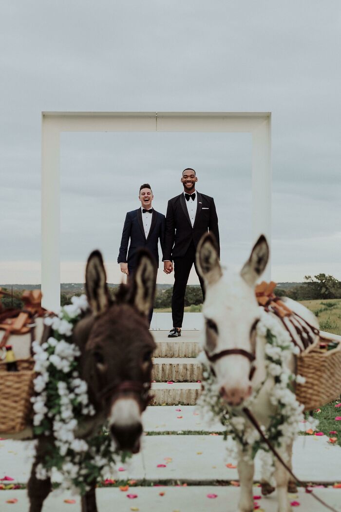 Los burros que acarreaban cerveza en nuestra boda también quisieron ser parte de la foto