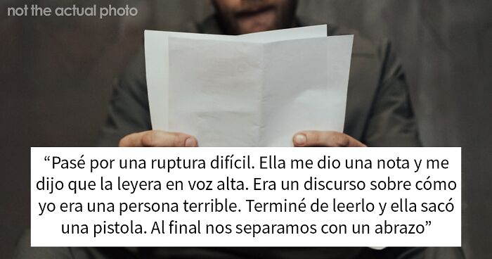 También había comenzado una relación nueva y saludable en este punto tal vez 3 semanas después de la ruptura primaria que la cabreó a más no poder. De todos modos, un día se presentó para recoger algunas pertenencias que todavía estaban en mi casa y me sentó en la cama y me dio una nota, diciéndome que la leyera en voz alta. Es un discurso realmente desagradable sobre cómo soy incapaz de amar, y una persona terrible, y merezco morir. Me niego, pero ella me grita y yo le digo: «Vale, lo leeré si así te vas». Así que termino el discurso y entonces ella saca una pistola cargada de su bolso y se pasa los siguientes 15 minutos tratando de reunir la voluntad para apretar el gatillo y salpicar mi cerebro por toda la pared. Dice que conoce la ley, que sabe que la cogerán, que sabe dónde irá a la cárcel y que le parece bien porque yo me iré de este planeta.
