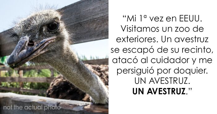 Primera vez en Estados Unidos. Fui a un zoológico al aire libre. Un avestruz se escapó de su recinto, atacó al cuidador y me persiguió. UN AVESTRUZ. UN AVESTRUZ.