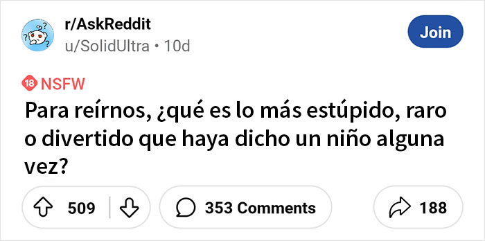 Recientemente, los adultos en este hilo online estaban haciendo exactamente eso: publicar las cosas más divertidas y extrañas que les había dicho un niño. ¿Te apetece reírte? Todo lo que tienes que hacer es leer esta lista y carcajearte con la sabiduría sin filtro que estos niños compartieron con personas adultas.