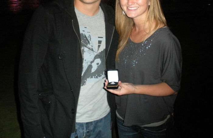 Me llevó a su apartamento después de viajar durante dos horas en coche desde mi universidad. Básicamente, estaba atrapada allí. Me lo preguntó porque estaba inseguro sobre la relación y pensó que una propuesta de matrimonio haría que me quedara. Evité responder durante unos días, pero tenía que volver a clases y no quería llevarme de regreso hasta que dijera que sí. Pensé que era un chico inteligente y que, eventualmente, volvería en sí. Me llevó de regreso a la universidad. Al final, se dio cuenta de que la coerción no es una buena estrategia para proponer matrimonio.