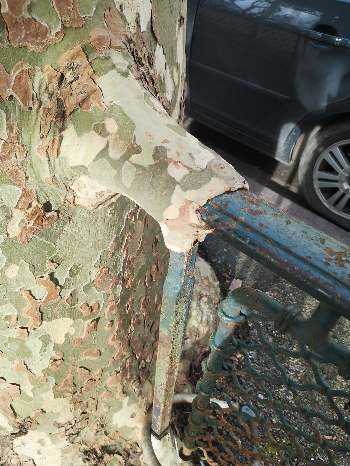 Le pusieron ojos saltones a este árbol que está consumiendo un puente