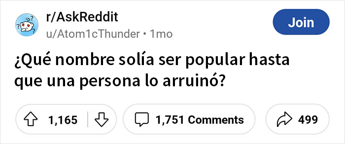 Los usuarios de reddit han estado discutiendo recientemente sobre nombres anteriormente comunes que han sido arruinados por una persona o evento, por lo que hemos recopilado algunas de sus opiniones a continuación. ¡Disfruta leyendo esta lista de nombres desafortunados y asegúrate de votar por aquellos que nunca les pondrías a tus hijos!