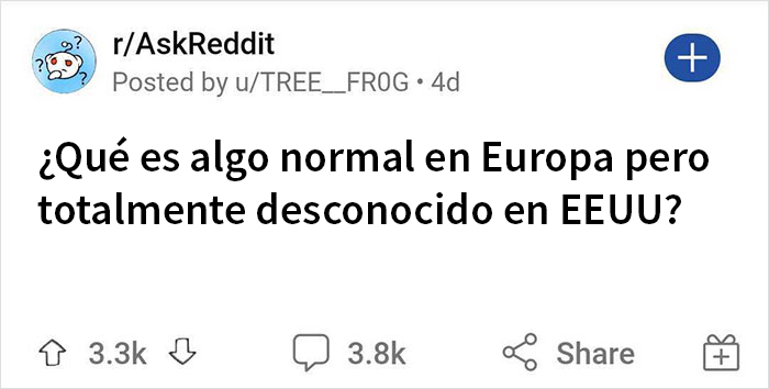 El redditor u/TREE__FR0G, un aspirante a herpetólogo, pidió a la gente que compartiera cosas que son completamente normales en la mayoría de lugares de Europa pero que le parecerían muy extrañas a alguien que vive en Estados Unidos. Echa una ojeada a lo que los internautas creen que son las mayores diferencias entre Europa y Estados Unidos.