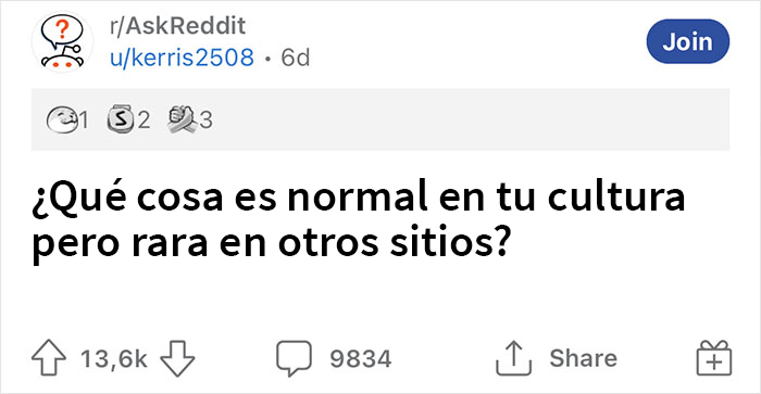 Recientemente, se acercó a la comunidad de "Ask Reddit" con una muy buena pregunta: “¿Qué cosa es normal en tu cultura, pero rara en otros sitios?”. La gente se apresuró a contar ejemplos verdaderamente fascinantes y el hilo, de inmediato, se volvió un éxito. Hemos elegido algunas de nuestras respuestas favoritas para compartirlas con ustedes, así que échenles un vistazo a continuación. Asegúrense de votar por aquellas que no hayan oído antes y, si conocen alguna peculiaridad de sus países de origen, ¡cuéntenla en los comentarios!