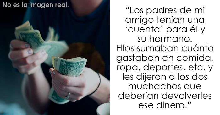 Los padres de mi amigo tenían una “cuenta” para él y su hermano. Ellos sumaban cuánto gastaban en comida, ropa, deportes, etc. y les dijeron a los dos muchachos que deberían devolverles ese dinero. Recuerdo que una vez nos gritaron por haber comido los bocadillos de su papá y sumaron eso a la cuenta.