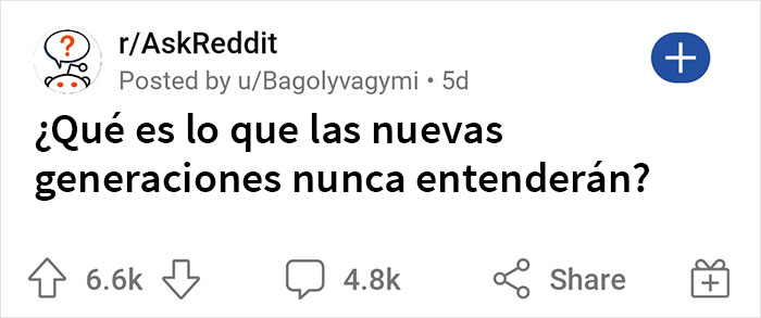 Con el interés puesto en los vacíos que formaron los últimos desarrollos, el usuario de Reddit u/Bagolyvagymi hizo esta pregunta: “¿Qué es lo que las nuevas generaciones nunca entenderán?”. Y los usuarios llenaron la publicación con sus respuestas. Al momento de escribir este artículo, tenía 4,9 mil comentarios, y aquí tienen algunos de los más votados.
