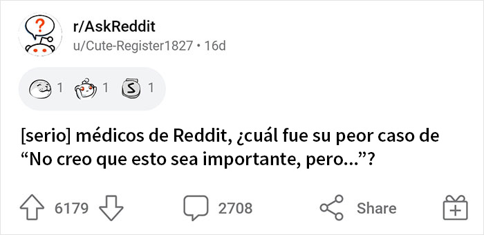 Los médicos de Reddit han compartido sus historias sobre sus peores pacientes: "No creo que esto sea importante, pero...". Desplázate hacia abajo y lee cómo el hecho de no revelar algo que un paciente pensaba que no tenía importancia resultó ser muy significativo. Si hay algún Doctor Panda por aquí hoy, puedes compartir tus propias historias sobre pacientes poco comunicativos en los comentarios, como advertencia.