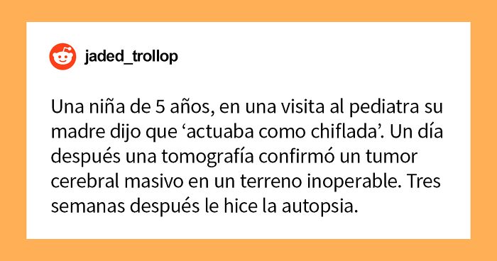 Una niña de 5 años, en una visita al pediatra su madre dijo que ‘actuaba como chiflada’. Un día después una tomografía confirmó un tumor cerebral masivo en un terreno inoperable. Tres semanas después le hice la autopsia.
