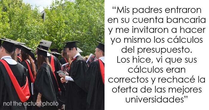 Lo que ocurrió a continuación sorprendió al hombre, ya que sus padres le dijeron que tendría que rechazar su invitación porque no tenían medios para pagar su matrícula. El usuario recuerda que sus padres incluso le mostraron su presupuesto para que pudiera ver por sí mismo que no podrían pagar sus gastos escolares. El hombre compartió que esto ocurrió allá por 2016 cuando era un joven de 17 años que, incluso a esa corta edad, se dio cuenta de que realmente no podían cubrir su matrícula.