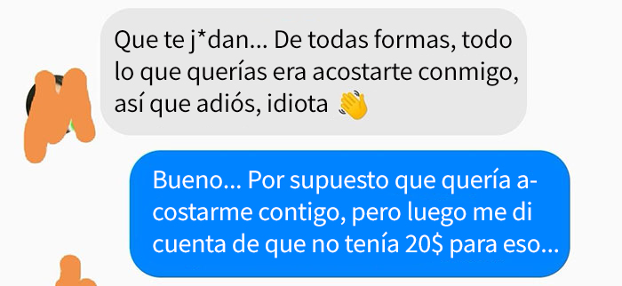 «Normalmente pago lo de ambos, pero soy estudiante y trabajo 60 horas semanales para pagarme la comida, los libros y demás. Así que obviamente no podía permitirme pagar los 110$ que costaba su comida. Le volví a pedir salir sobre todo para disculparme por la vez anterior, esperando ir a un sitio más barato y poder compensárselo, pero como veis, el resultado fue bastante malo…»