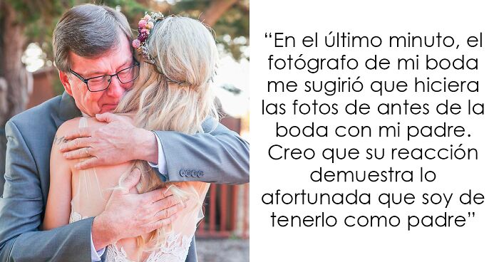 En el último minuto, el fotógrafo de mi boda me sugirió que hiciera las fotos de antes de la boda con mi padre. Creo que su reacción demuestra lo afortunada que soy de tenerlo como padre