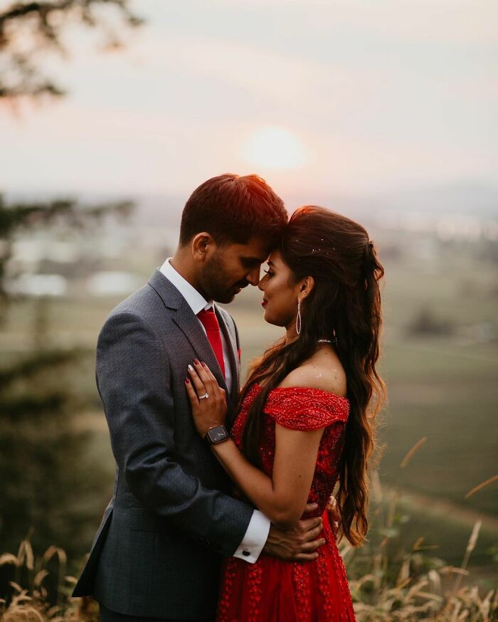 «Dos días antes de la sesión, Sharath me escribió para decirme que planeaba pedirle matrimonio a Savi durante la sesión. A partir de entonces, decidí darles a ambos las mismas indicaciones para ello. Les diría que se pusieran espalda contra espalda y se giraran tras contar hasta 3, y entonces era el momento de arrodillarse. Salió perfecto, lo que ocurrió me hizo saltar las lágrimas, ya que ambos se pidieron matrimonio al mismo tiempo. Esta es mi petición de mano favorita de la que he sido parte, muchas gracias por contar conmigo.»