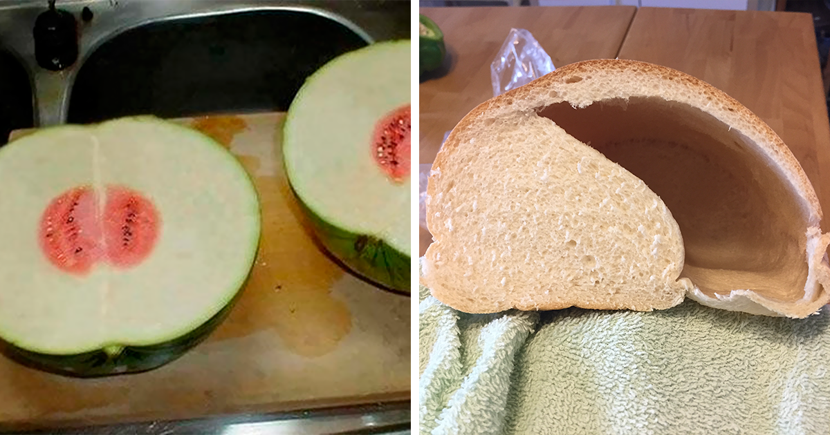 No hablamos solo de esas bolsas de patatas fritas que resultan ser mayormente aire, o el café con hielo que es hielo con un chorrito de café. Esta gente ha sufrido enormes decepciones con la comida: frutas que por fuera parecen una cosa y por dentro son otra, chocolatinas a las que les falta algo, caramelos de sabores que luego son de un solo sabor... Muchas de estas cosas no deberían haber salido de la fábrica.
