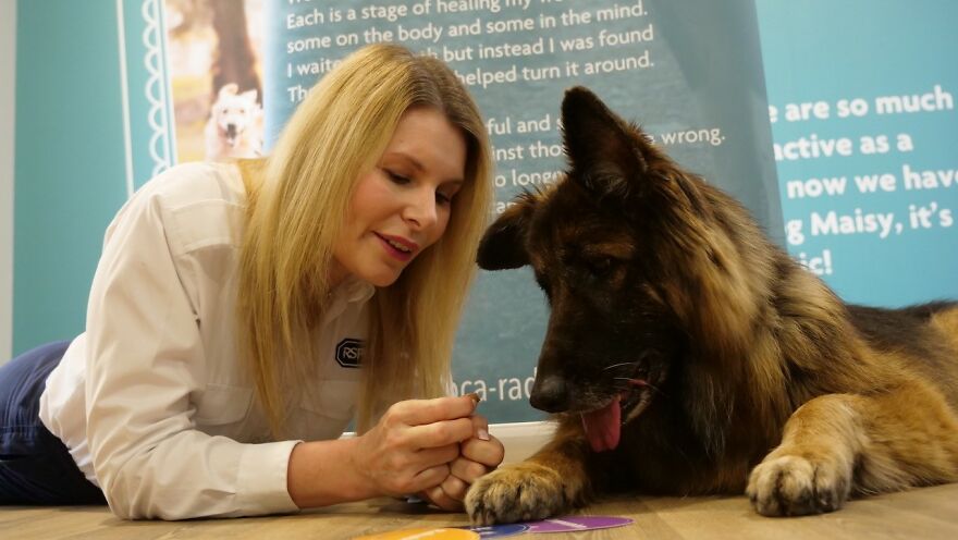 Por suerte, la perra adulta de raza pastor alemán ha estado al cuidado de la RSPCA durante los últimos 15 meses, donde se ha transformado por completo y se ha recuperado por completo, lo que la ha llevado a encontrar un hogar definitivo con una pareja de jubilados, Maggie Mellish y Charlie Douglas.